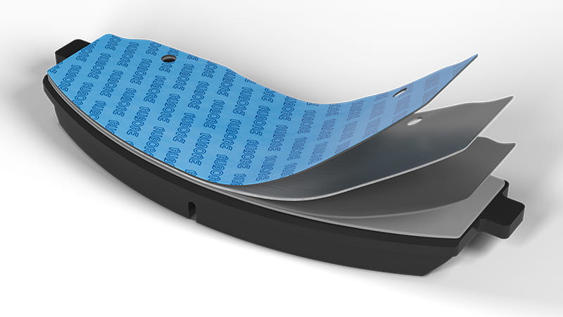 The company develops and manufactures noise damping shims, which when applied to the piston or finger side of a disc brake pad back plate provides an insulation. This barrier between the pad and the rest of the brake caliper absorbs vibrations and dampens any noise generated during vehicle braking. The shims are manufactured by the lamination of numerous combinations of rubber, steel, stainless steel, fiber glass and different adhesives.